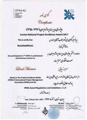 - عضو تیم بازنگر استاندارد PMBOK (ویرایش ششم)
