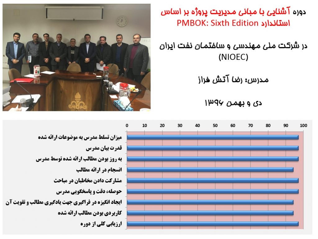 دوره های آموزشی برگزار شده : دوره آشنایی با مبانی مدیریت پروژه بر اساس استاندارد PMBOK
