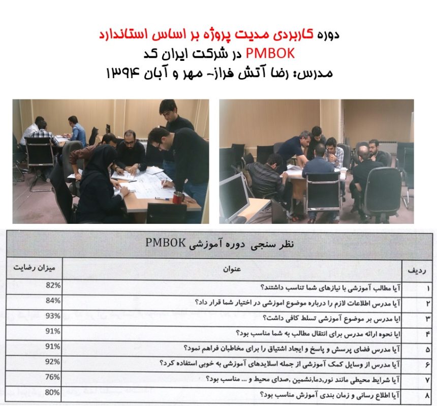 سایر سازمان هاشرکت ایران کد شرکت ایران کد دوره کاربردی مدیریت پروژه بر اساس استاندارد PMBOK(گروه دوم) – مهر و آبان 1394 دوره کاربردی مدیریت پروژه بر اساس استاندارد PMBOK(گروه اول) – مهر و آبان 1394 اداره استاندارد ایران دانشگاه علوم پزشکی تهران